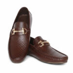 Ye aik classy slip-on shoe hai jo apni woven-style texture aur golden horsebit detail ki wajah se jana jata hai. Ye formal suits aur semi-formal dressing dono ke liye perfect hai.